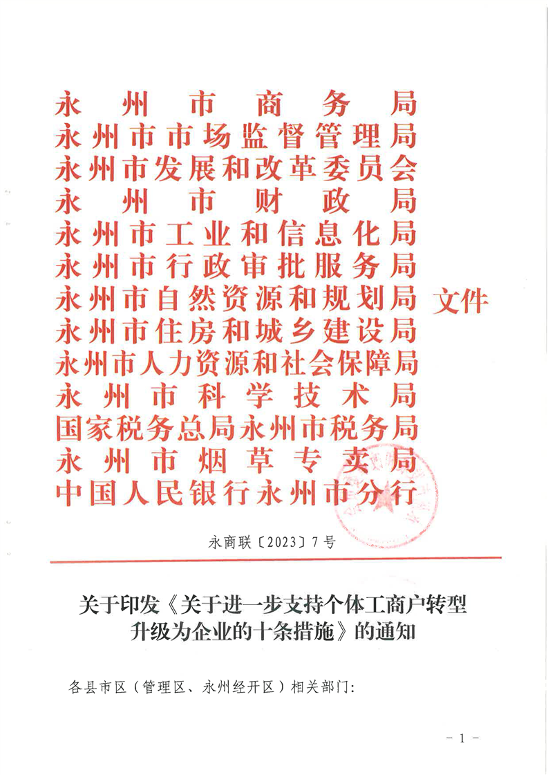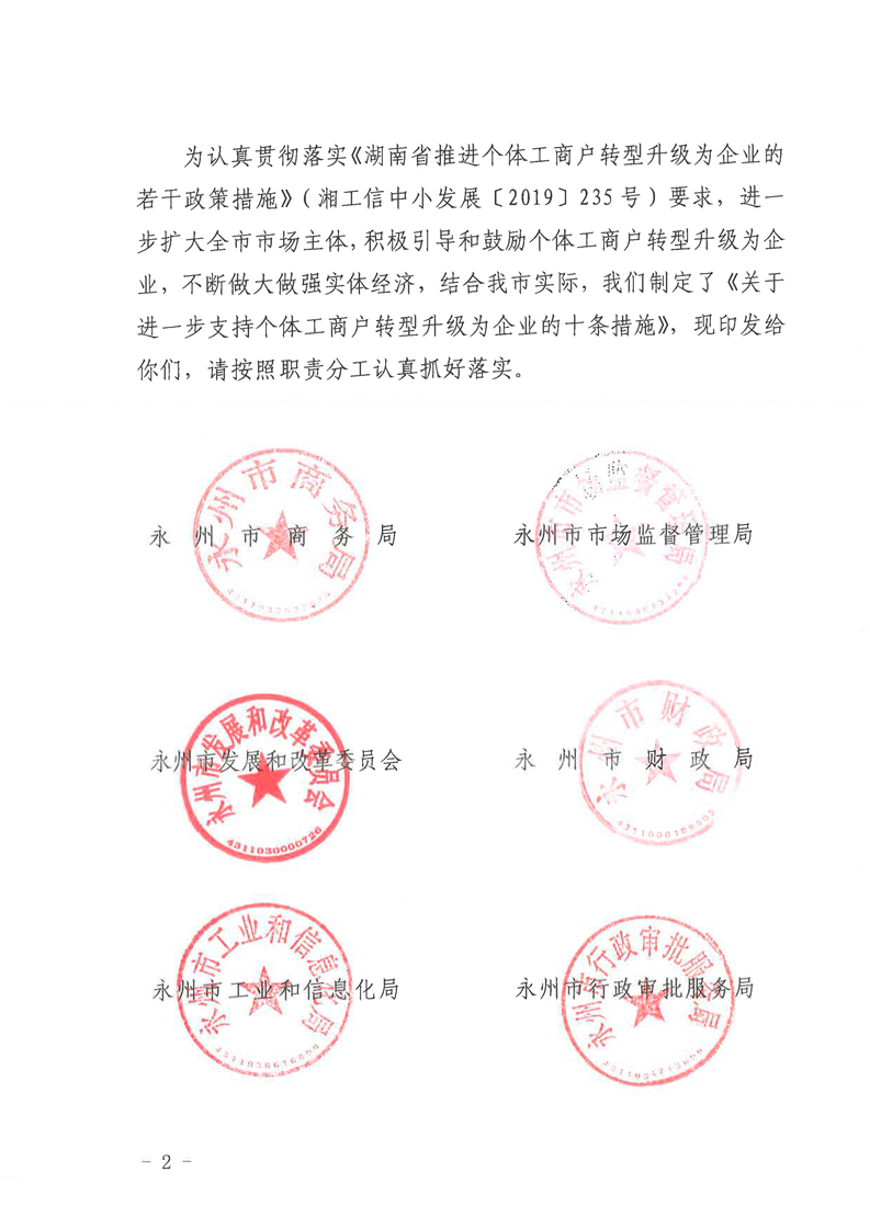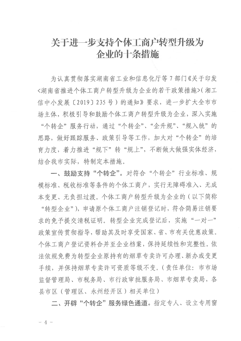 关于进一步支持个体工商户转型升级为企业的十条措施